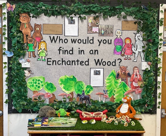 Dahl Class have had a wonderful term, full of exciting learning. Our topic has involved us exploring what can be found in an enchanted wood. We have listened to many stories containing woods and met lots of wonderful characters. We read Little Red Riding Hood, Goldilocks, The Gruffalo and many more. We went to Bourne Woods twice this term and saw many different things living in the woods. We saw birds, squirrels, dogs and we even saw a horse! We came across a den and noticed that a picnic had been set up. We think it was from the three bears! We made biscuits in school and took them to the woods. We ate our biscuits in the den and enjoyed a hot chocolate while we were there too!