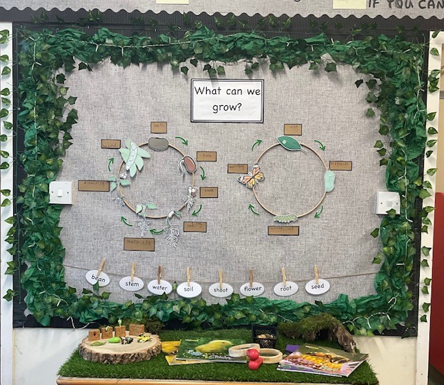 We have made our playhouse into a garden centre to link with our enquiry question “what can we grow” the children have enjoyed browsing through the different products on offer in the garden centre, taking them to the shop keeper and paying for their items. The children have then practised their writing skills to write receipts for their customers!