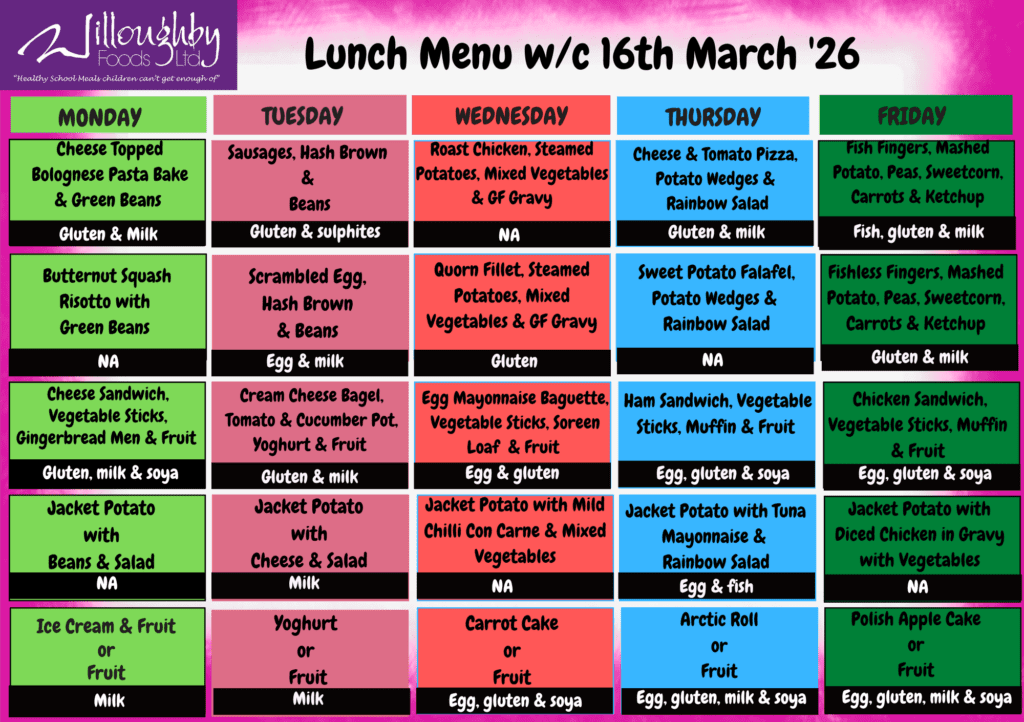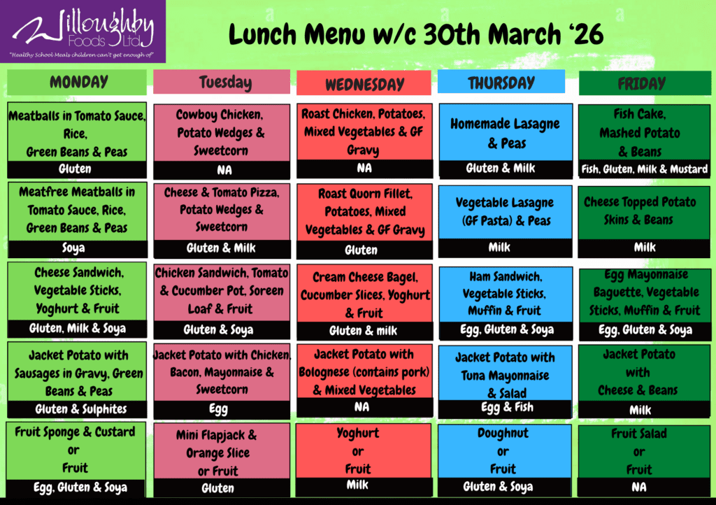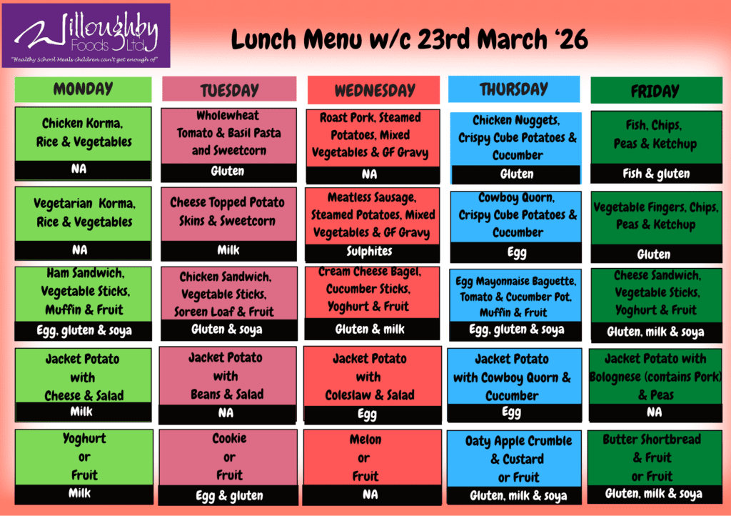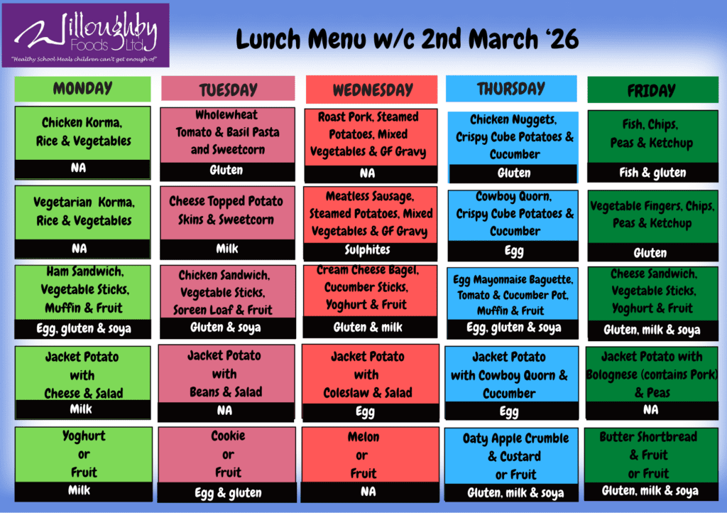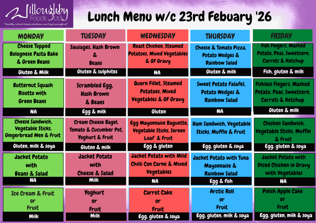 Willoughby Foods Ltd is our school meal provider. They can be contacted at: